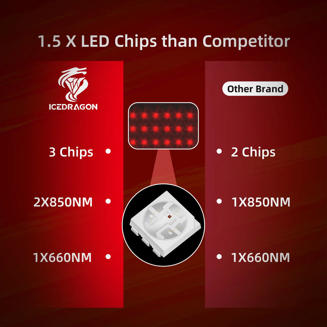 Icedragon utilizes medical-grade LED bulbs with an irradiance level that is over double that of our competitors. Therefore, our product delivers even more noticeable results.